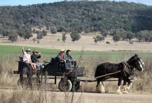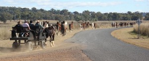 With the sale of our first born colt, Rebel, to Bingara we managed to trek on down (5 hour drive) and see him in action with his new owners and take part in their massive horse muster that was being filmed by the TV show, Sydney weekender, we hope to be able to get a copy as we won’t see the program here in QLD. Dale was thrilled to be in the cart being pulled along by Rebel along with a gelding, both horses are still in training so this added to the experience as they adjusted to the task under expert tutelage of two drivers, one being the new owner John.